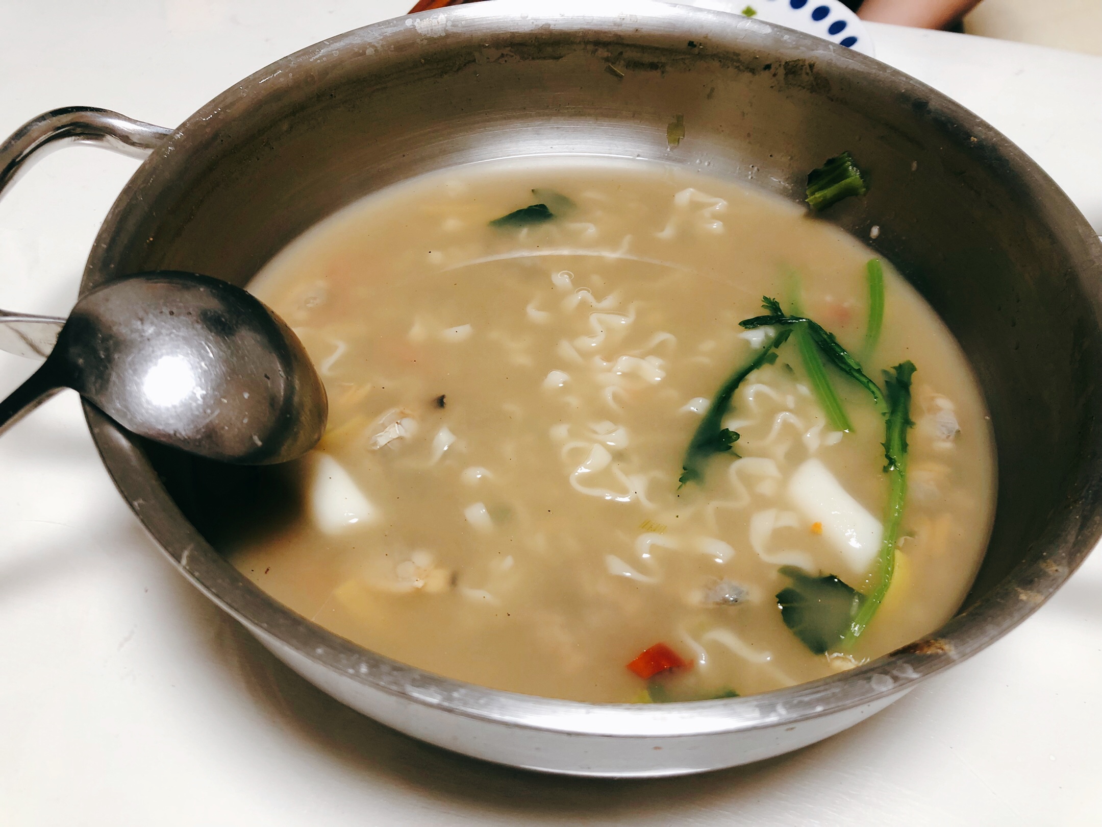 라면의 분말스프가 해물베이스라서,