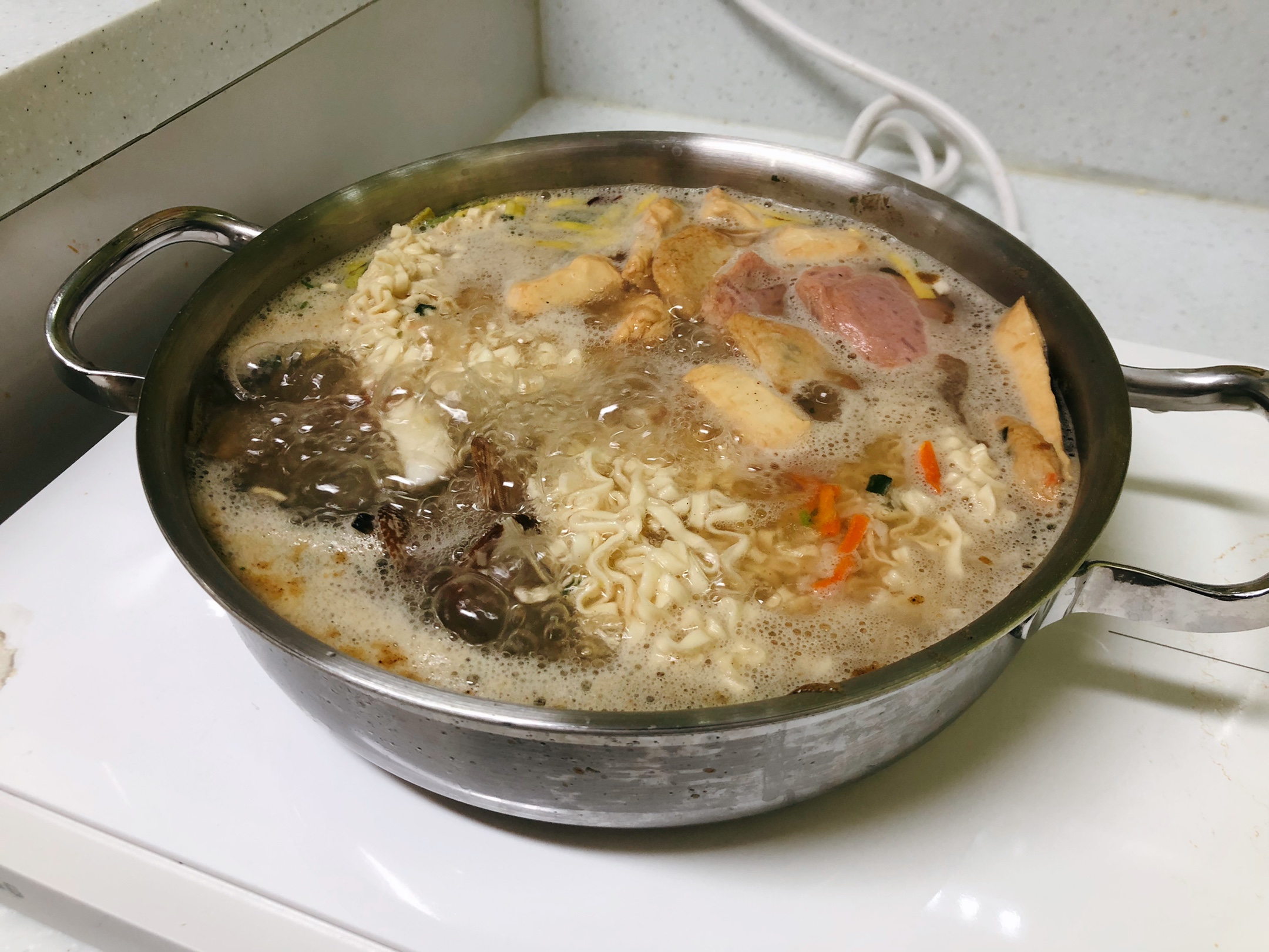 2. 전골냄비에 물 1L를 넣고 끓기 전에,