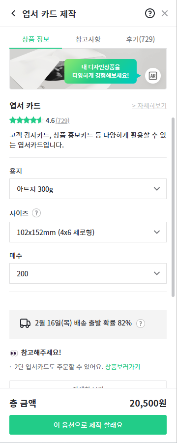 제일 비싼 재지를 선택해도 200장 기준 49,100원 입니다.정말 가성비 있지 않나요?